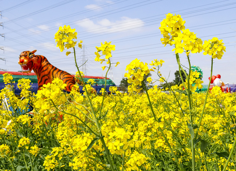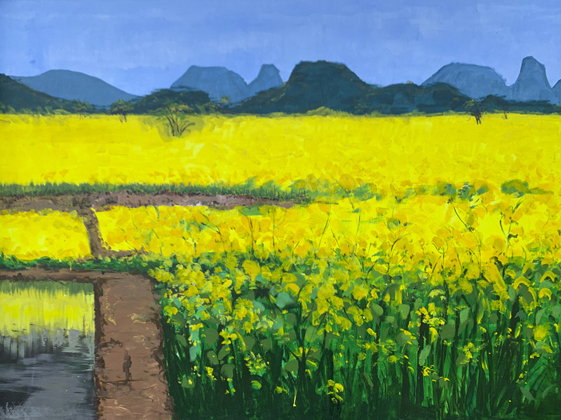 一簇簇金灿灿的花朵拼合成一张巨大的金地毯,在暖暖的阳光下蜿蜒连绵,为静美的乡村增添了一抹亮丽色彩。