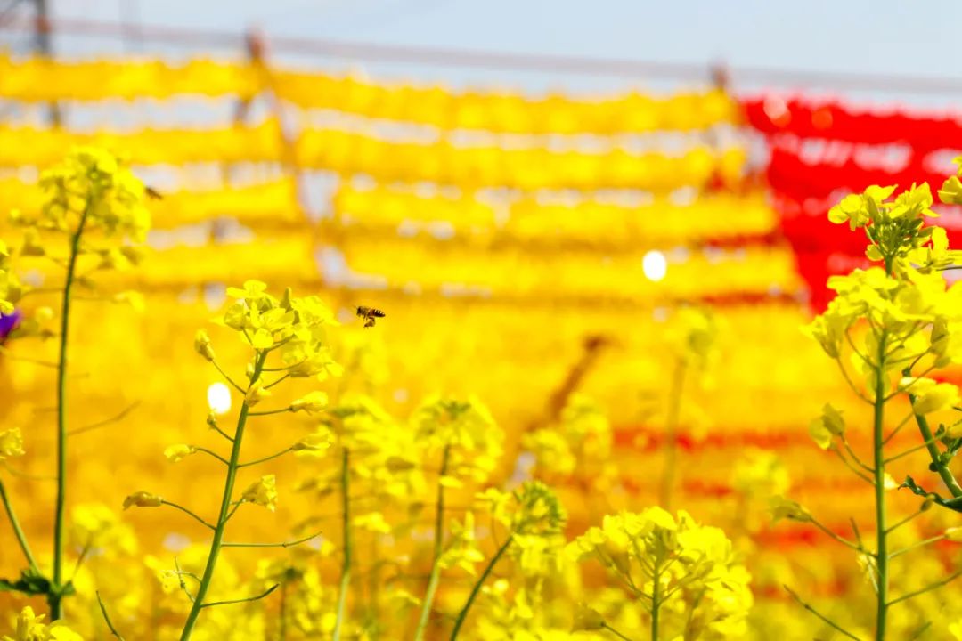 湛蓝的天、洁白的云,金灿灿的油菜花海望不到头,蝴蝶和蜜蜂在花间飞舞和忙碌,小鸟叽叽喳喳叫个不停,好一幅灵动的春日画卷!赶紧来打卡拍照,留住这片油菜花海的春天!